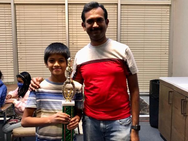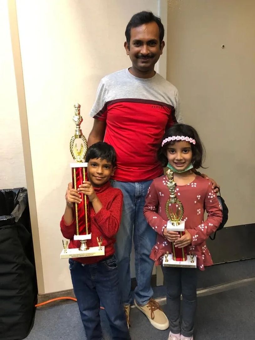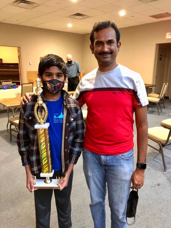 Karthik Prabhakar (Left): 4th place in Ohio Grade Level State Championship, Grade 6, with 3.5/5 points